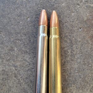 1 box has brass case the other is nickel plated brass, both factory new boxes, great for large game hunting